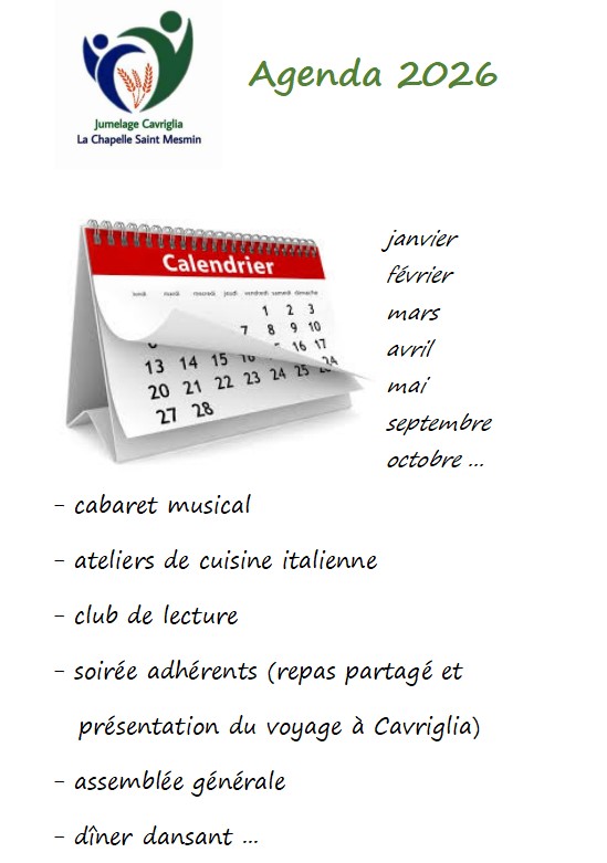 – samedi 9 mai à 18h30, salle du Plessis des Hauts : repas partagé entre adhérents et amis, avec une restitution du voyage à Cavriglia, projection de photos, vidéos et quizz. Entrée sur inscription, sur notre page HelloAsso.