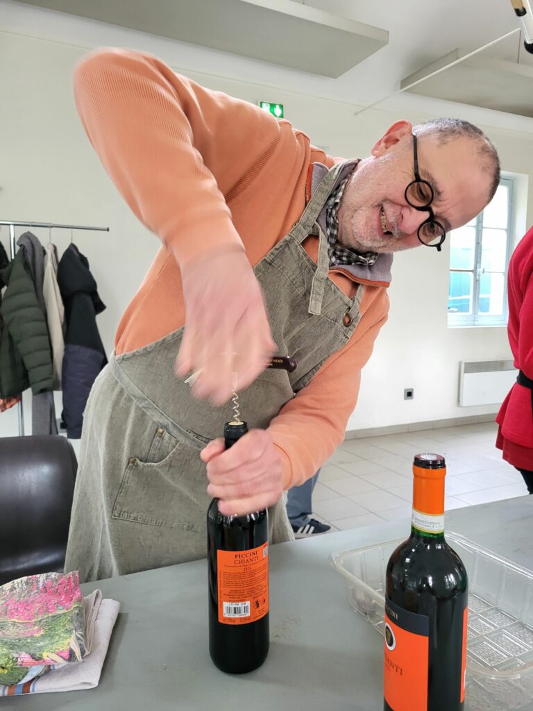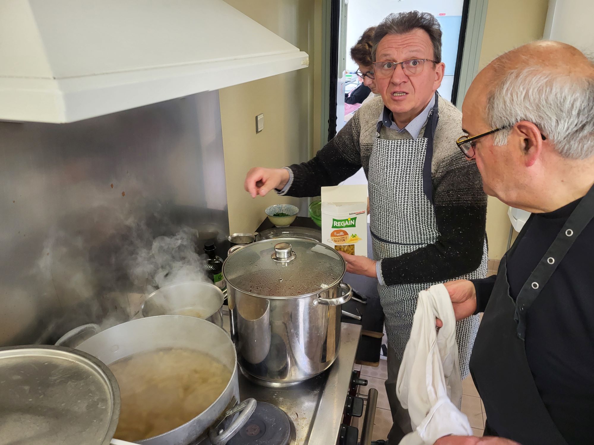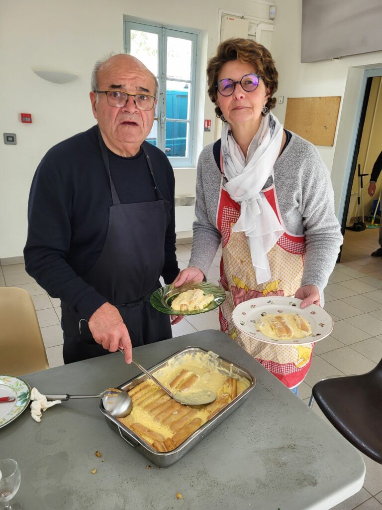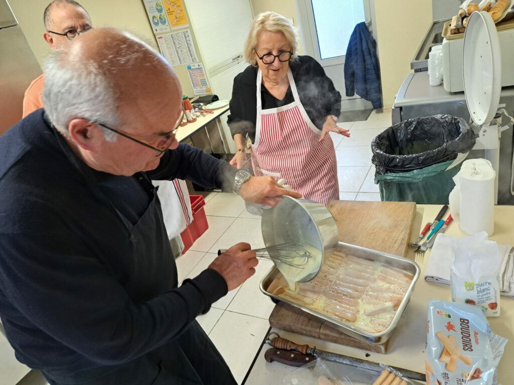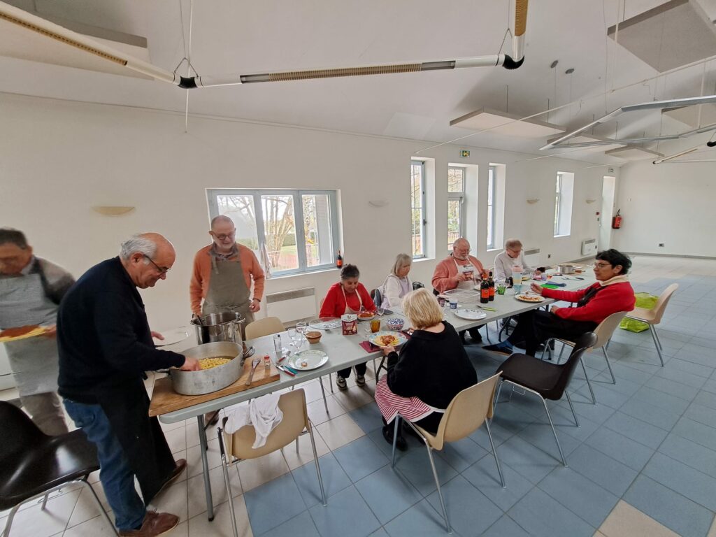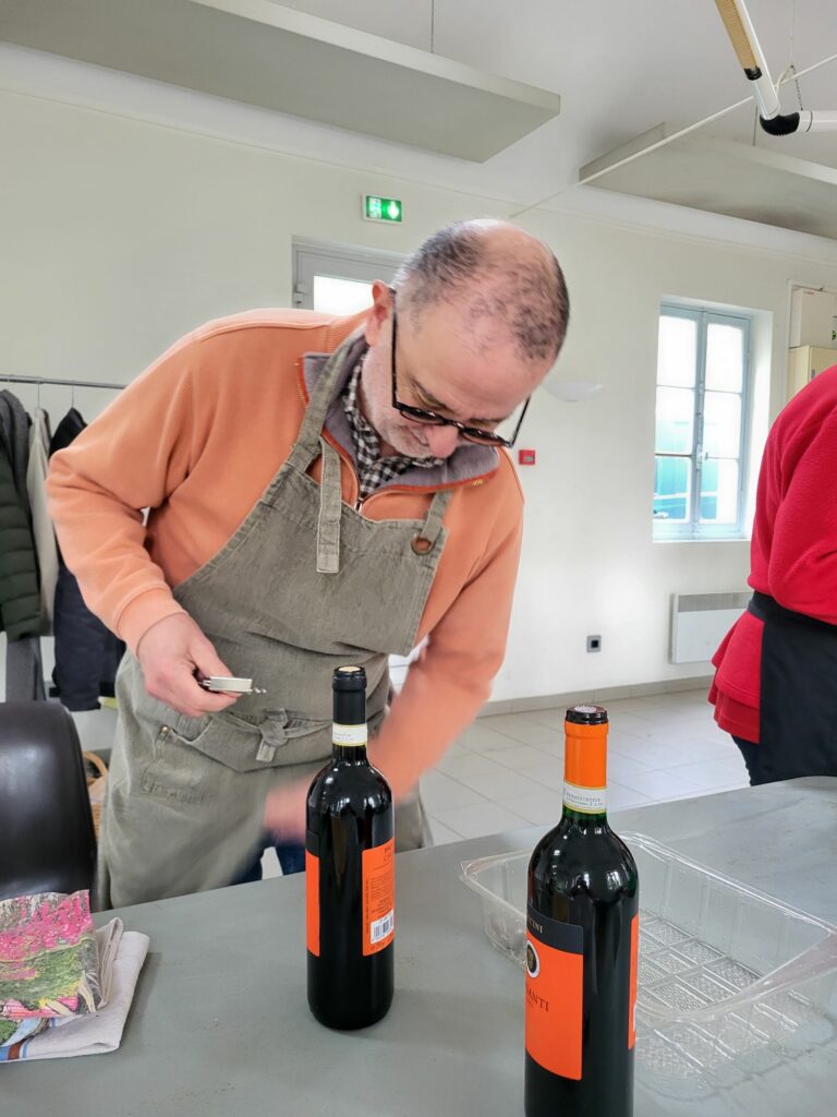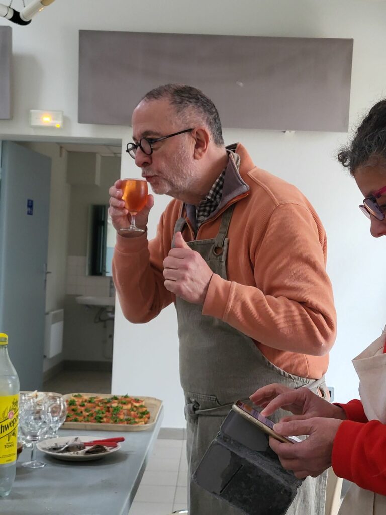 Ce Samedi 28 mars 2026, notre jumelage organisait un cours de cuisine thème Italien à La Guinguette de La Chapelle Saint Mesmin. Neuf personnes ont répondu présents. Franck Cangi le Chef Cuisinier Italien nous à fait un menu composé de crostini en entrée pour accompagner l’apéritif, un Spritz . Une Fricassea di pollo alla toscana, précédée de pâtes, poulet à la Toscana. Un dessert Zuppa inglese, vin de Chianti, café.