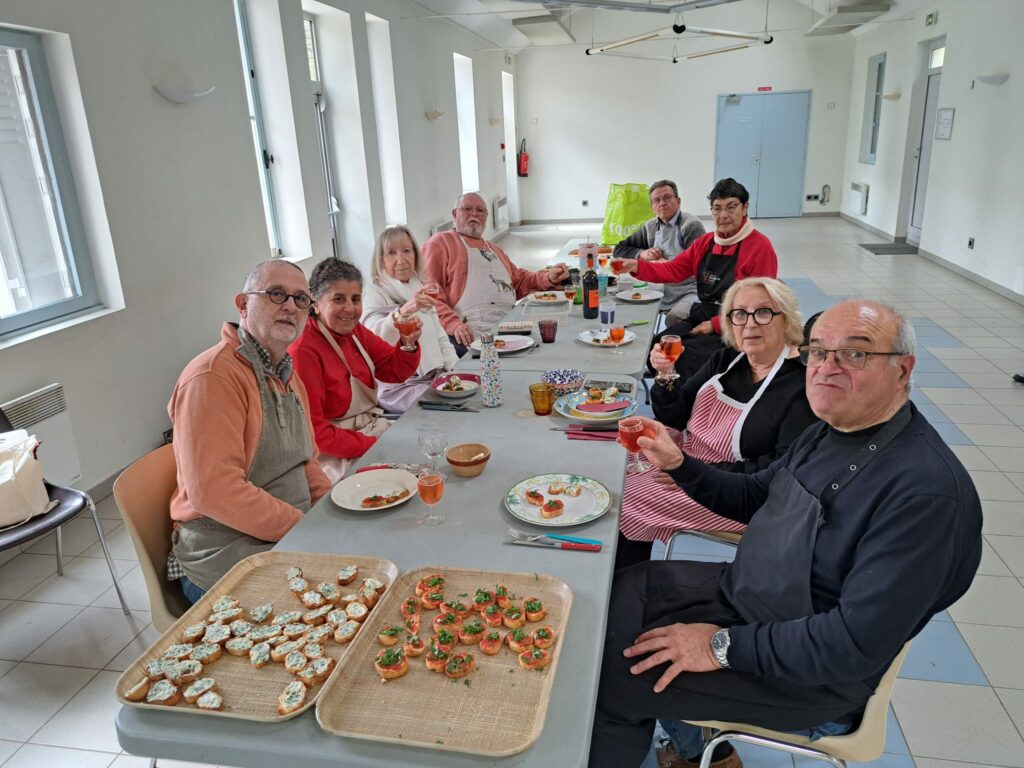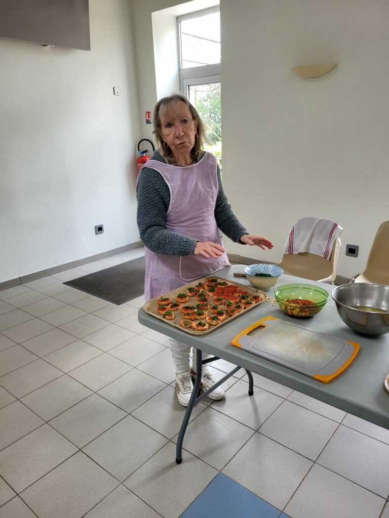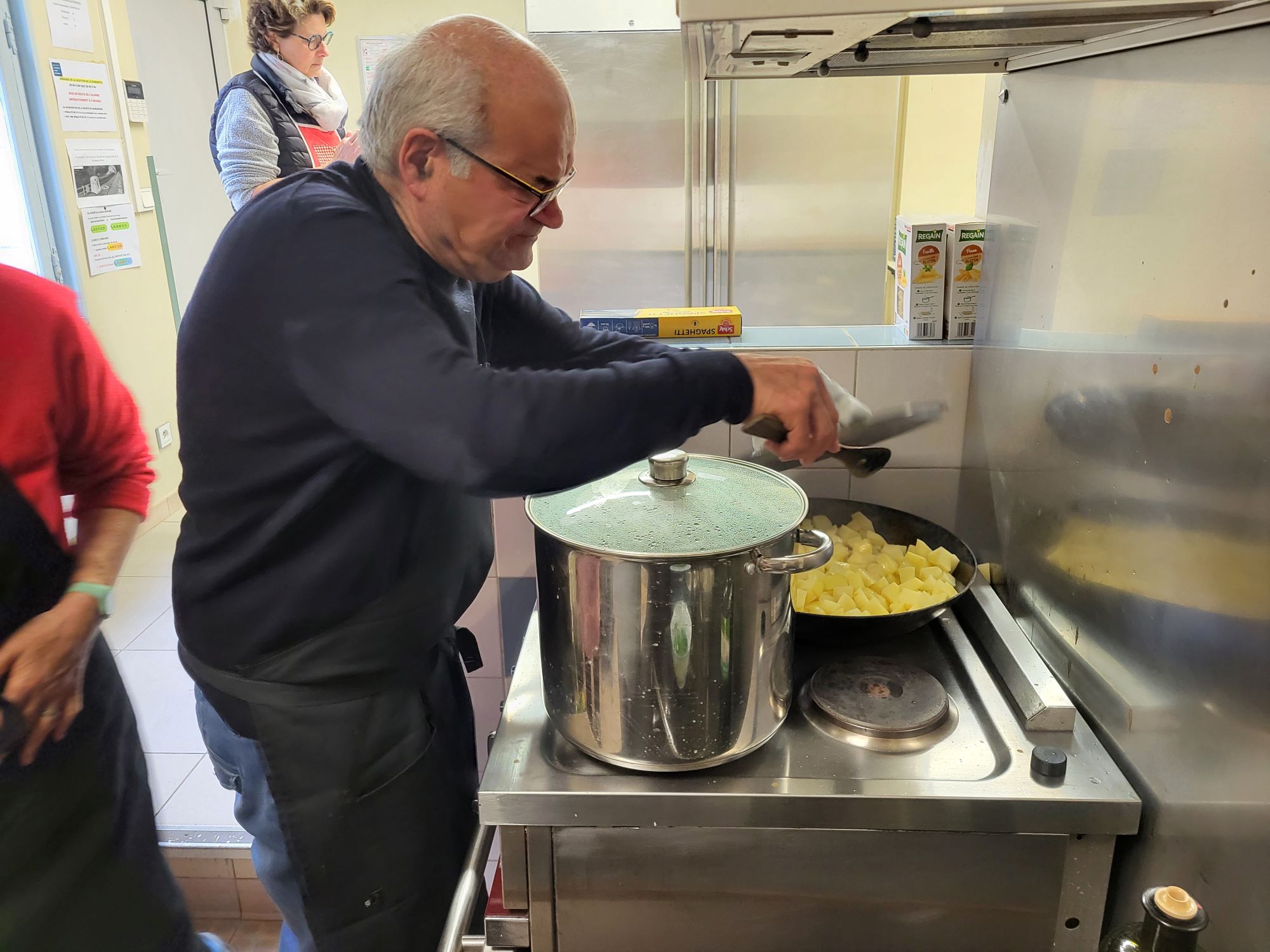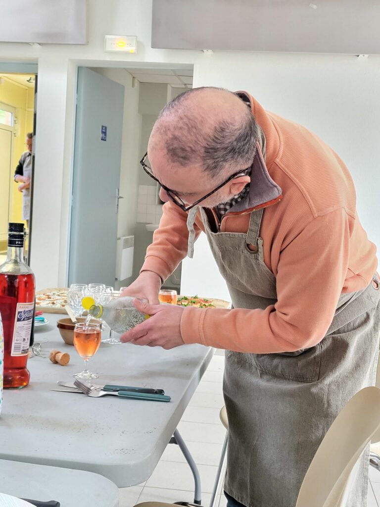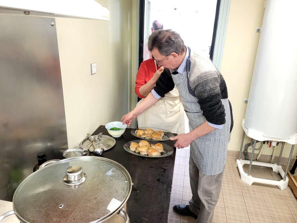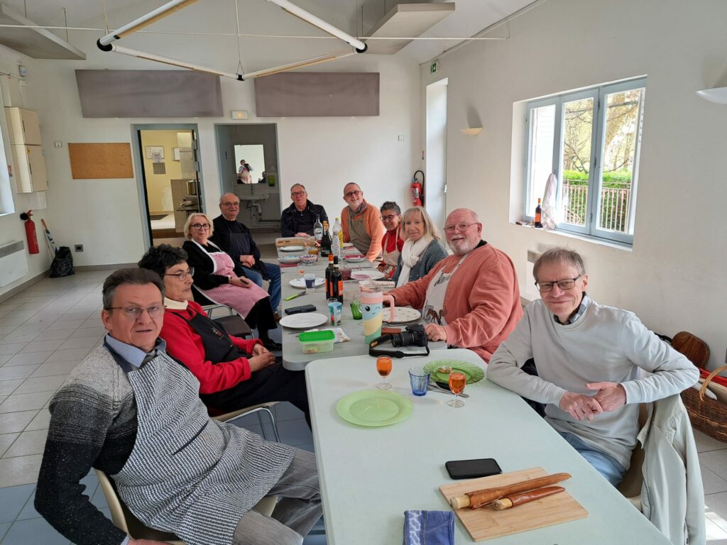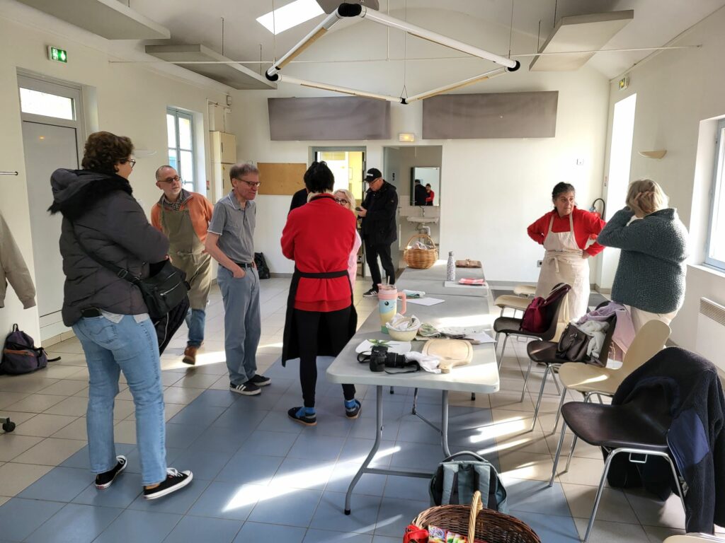 Ce Samedi 28 mars 2026, notre jumelage organisait un cours de cuisine thème Italien à La Guinguette de La Chapelle Saint Mesmin. Neuf personnes ont répondu présents. Franck Cangi le Chef Cuisinier Italien nous à fait un menu composé de crostini en entrée pour accompagner l’apéritif, un Spritz . Une Fricassea di pollo alla toscana, précédée de pâtes, poulet à la Toscana. Un dessert Zuppa inglese, vin de Chianti, café.