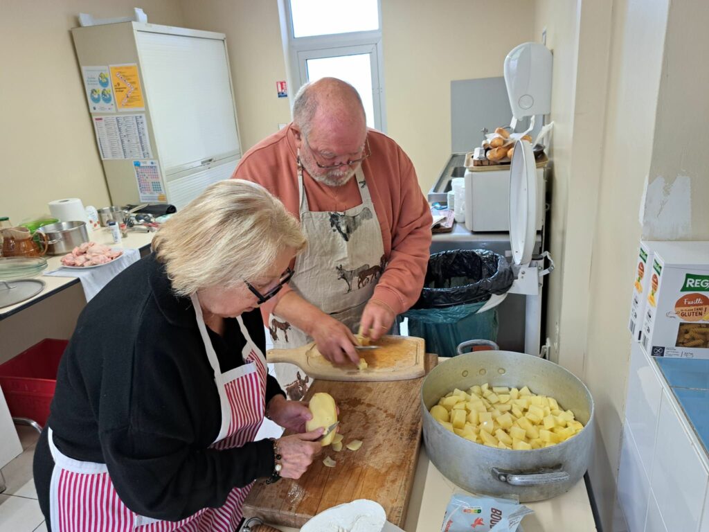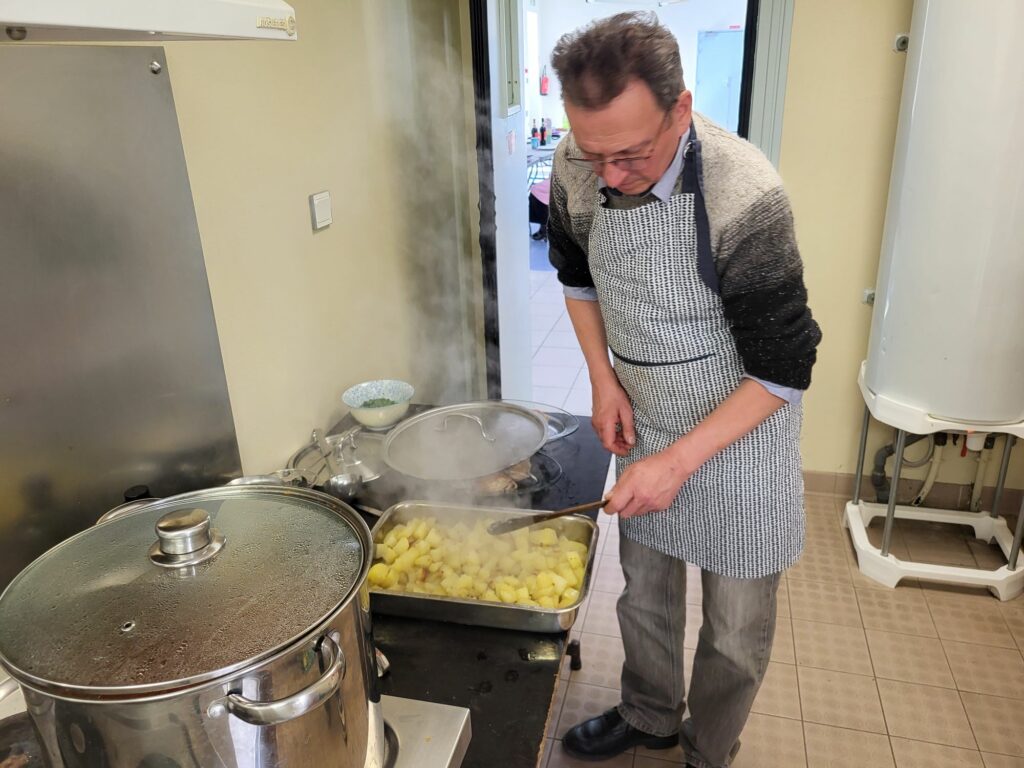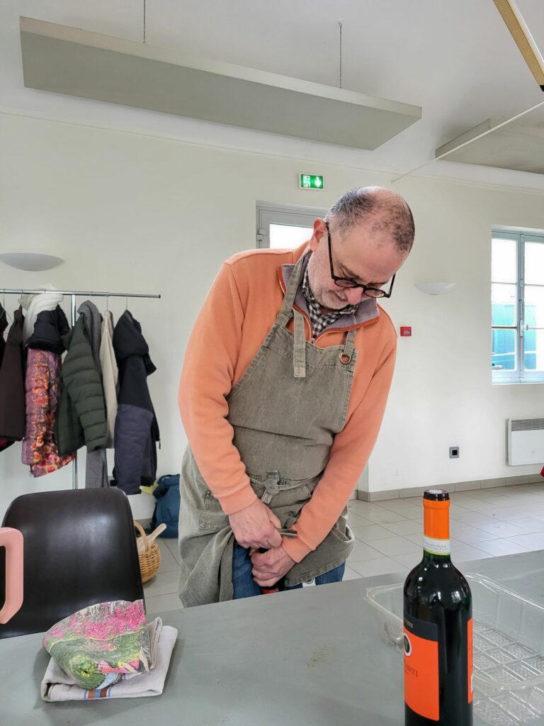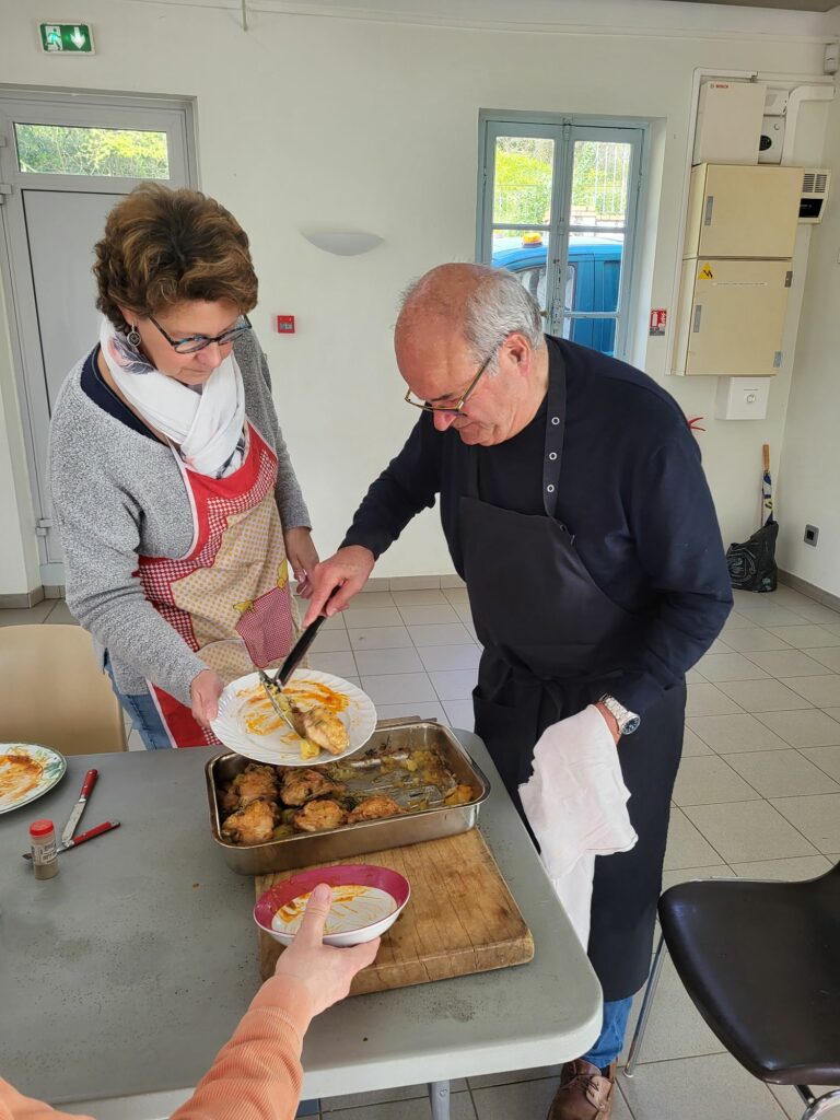 Arrivée des participants à 9 h 00. Franck nous partage en ateliers. Chacun se partageait les tâches de préparations des ingrédients pour composer les plats à cuisiner.